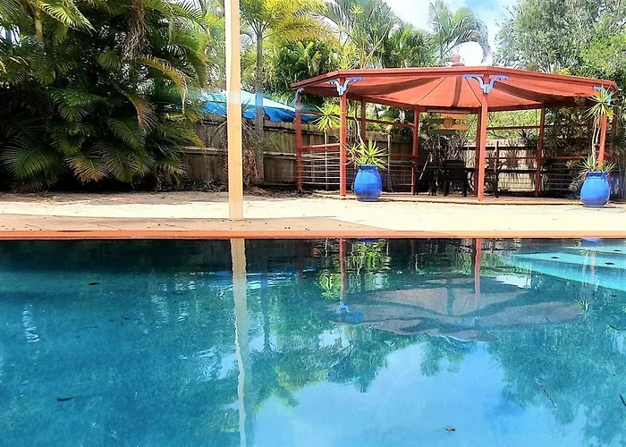 Het vakantiehuis ligt in een woongebied van Rainbow Beach, binnen 10 minuten met de auto weg van de Carlo Sand Blow. De 3-badkamer villa is gesitueerd in de onmiddellijke nabijheid van Cooloola Wilderness Trail, terwijl Rainbow Beach Rd near Carlo Rd busstation op 100 meter verderop is.